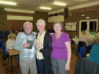 Skittles winners, Barry and Eve with their prizes, with the evening’s organiser Lynda